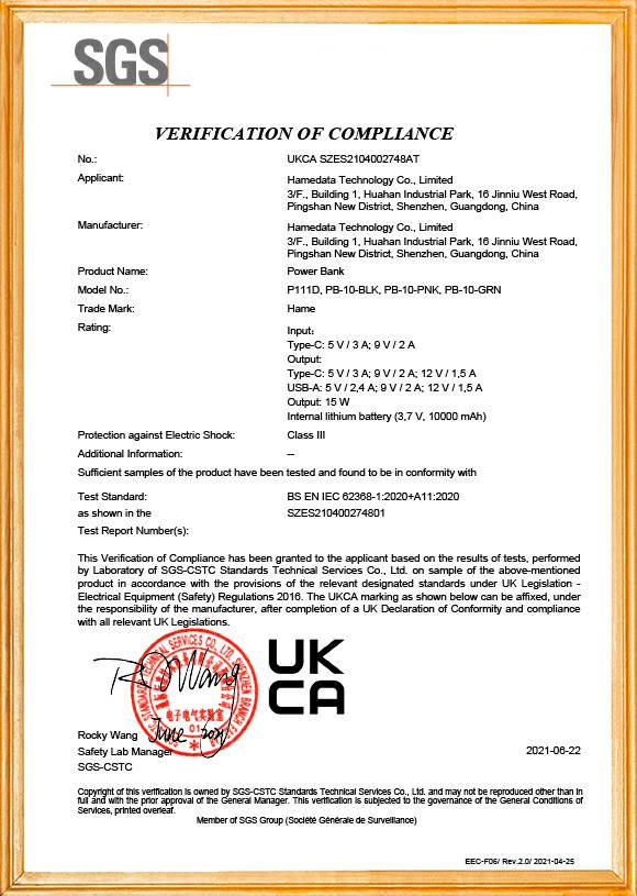 移动电源产品品质证书1